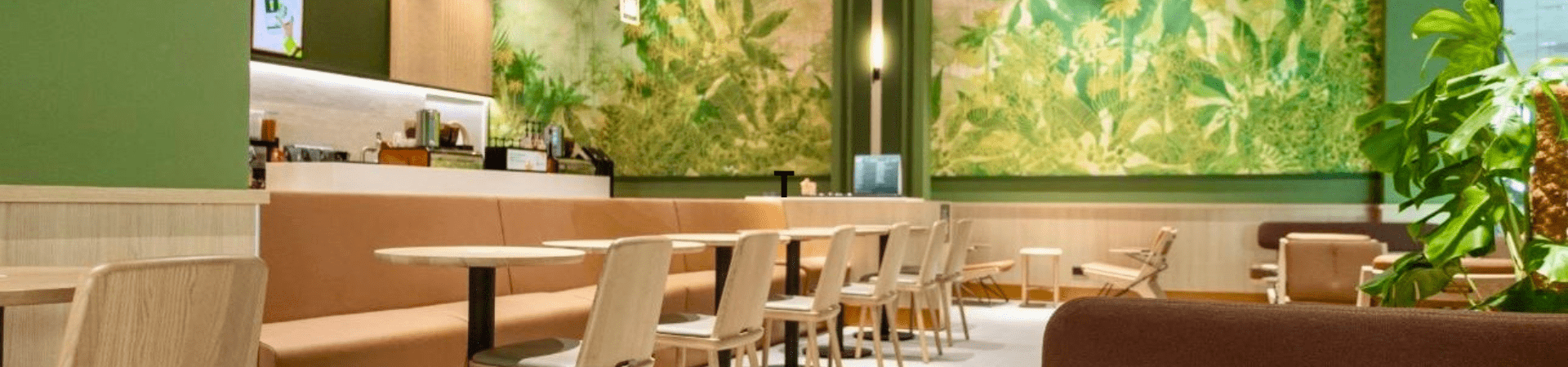 Par ailleurs, vous pouvez découvrir l’agencement de restaurants comme Five Guys, dont l’identité visuelle est très présente, ou bien encore Starbucks dans un style différent.